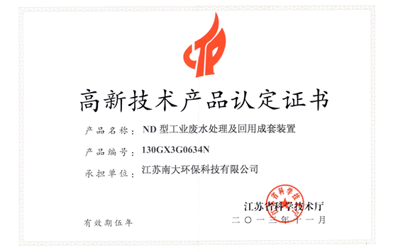 此次南京市共有168家企業(yè)共計269件產(chǎn)品獲得高品證書,其中環(huán)保企業(yè)有8家,我公司包含其中。同時,“ND型工業(yè)廢水處理及回用成套裝置”也是我公司獲得的首個環(huán)保治理設(shè)備方面的高新技術(shù)產(chǎn)品。